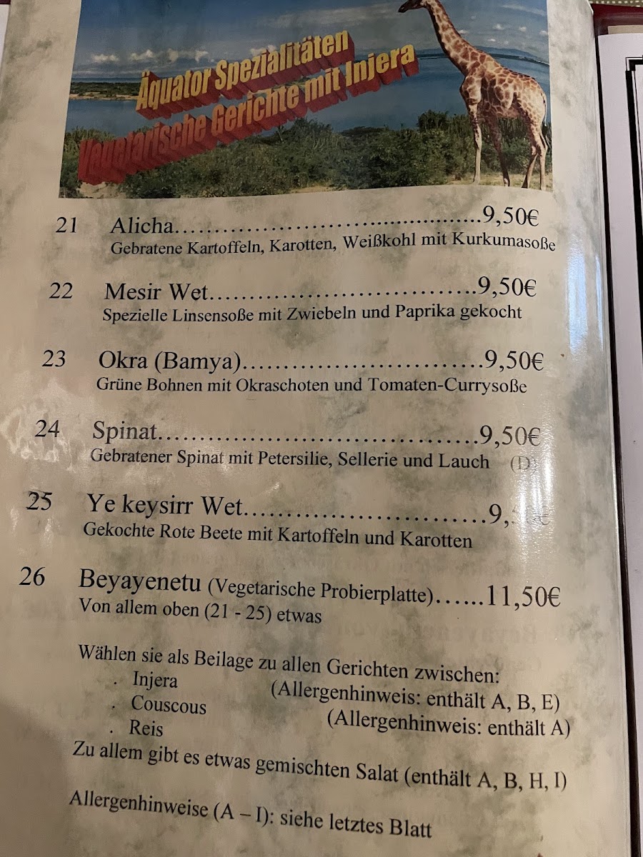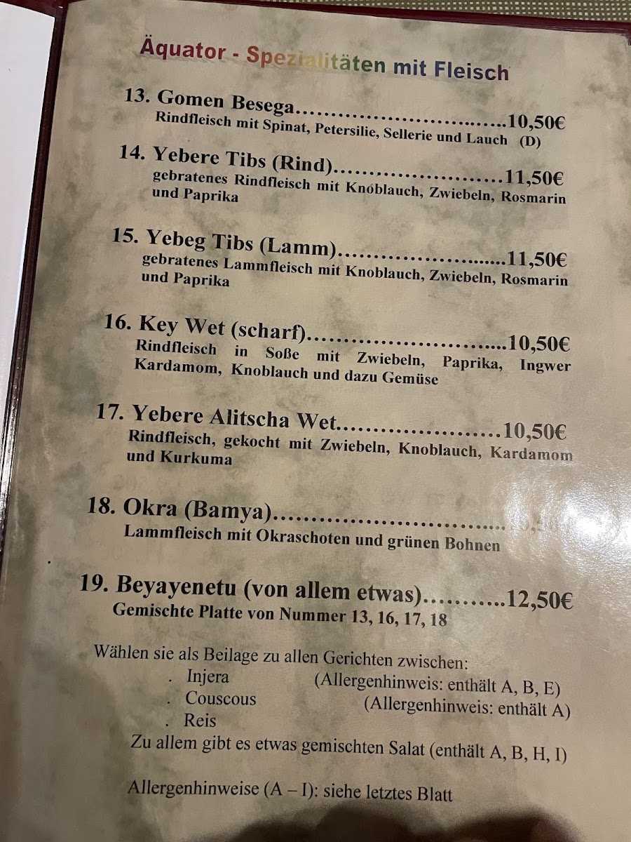 Welcome to Restaurant Äquator, a hidden gem in Stuttgart that promises a vibrant culinary journey through authentic Ethiopian flavors. Located on Kreuznacher Str. 57, this restaurant has garnered a warm response from locals and visitors alike, who rave about both the delicious dishes and the inviting atmosphere.